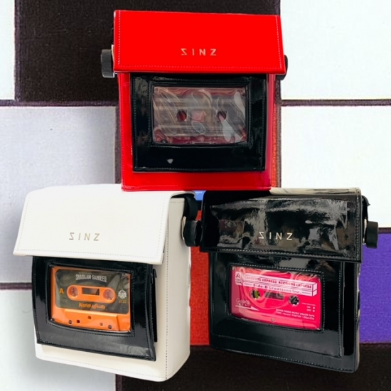 SINZの定番アイテム/カセットテープ型のICカセットケースが出し入れ出来るバッグは出来ないものかと試行錯誤 85歳になる職人さんと散々試作の上完成しました! カセットテープの出し入れは従来型はバッグの蓋を開けなければ使用できませんでしたが 今回からはマグネット式のまるでラジカセの開閉が可能となりました。 駅の改札口の出入りではcoolな顔してICカセットケースでお通り下さい。もちろんラジカセ世代のオジサンに声をかけられても驚かないであげて下さい。
