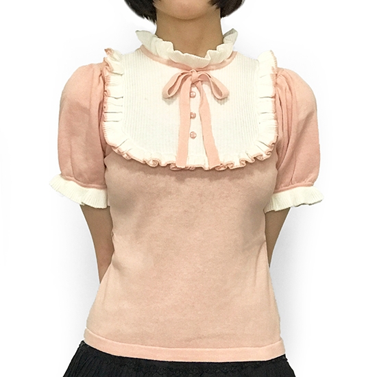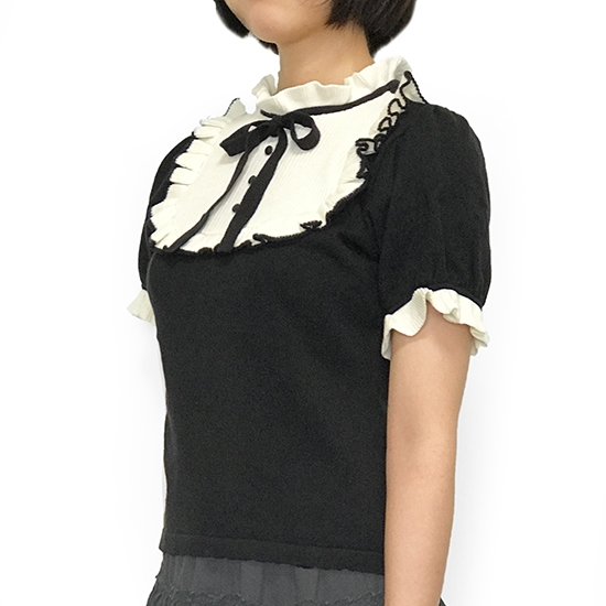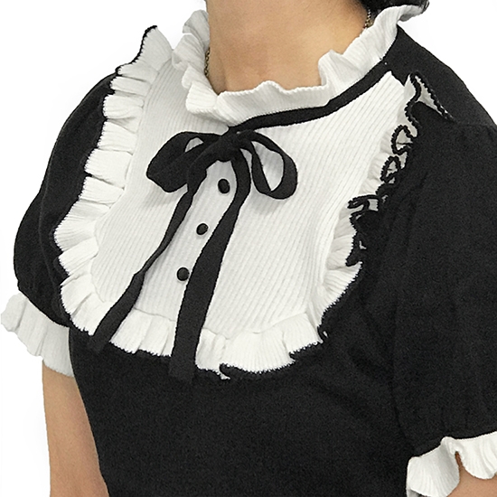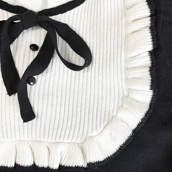 "Juliet" is one from popular SINZ' knitwear series "Trompe-l'œil". Designed with frills and a ribbons.