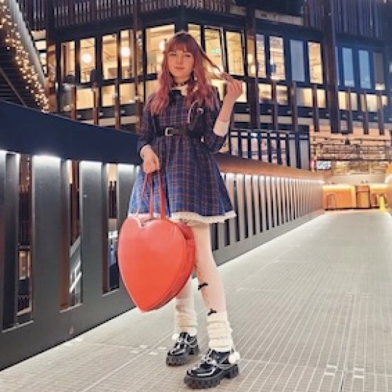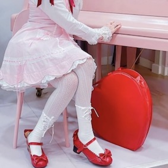 Hyper big heart shaped bag. Though it's not genuine leather, its texture is very soft. It has no brand logo or ornament. We choice as design only a big heart. Why don't you hang out with this bag filled with many presents?