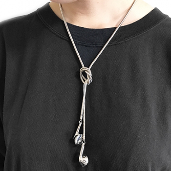 柔軟に動くスネークチェーンを使っていますので、結び目は自由にあらゆる服装の首回りにも対応出来ます。