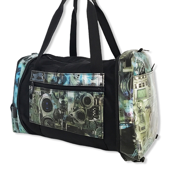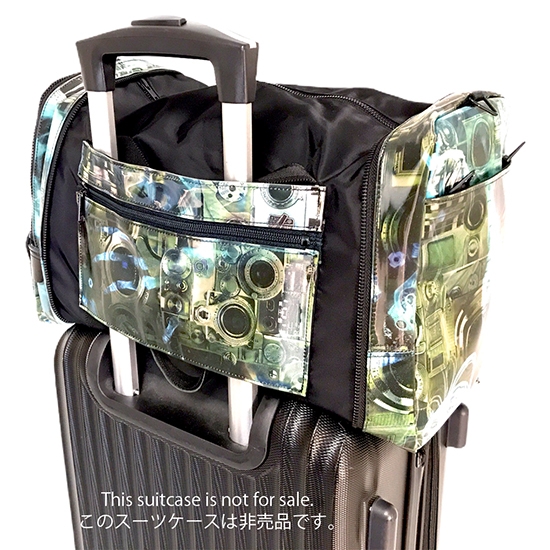 當作波士頓包使用時側面的拉練口袋還可套入行李箱拉桿,成為拉桿旅行包。