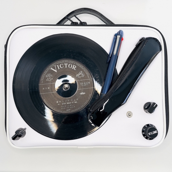 このバッグのポイントは お好きなドーナツ盤のレコードを送って頂ければレコードプレーヤー型のバッグにして 世界でたった一つの貴方だけのオリジナルをお創りできるというセミオーダーの企画です。コレこそ日本で作っているからこそ出来る細かい対応なのです!貴方の大好きなミュージシャンのドーナツ盤はNetや中古を扱っているレコード屋さんに行って捜してみましょう。画像のような黒いレコードだけでなく絵や写真がプリントされてるピクチャーレコード とか 色のついたカラーレコード、真ん中に貼ってあるラベル(レーベル)も面白いモノがイッパイあります。 貴方の感性をくすぐるレコードアートを楽しんで是非覗いてみて下さい。レコード盤を送って頂いた方は特注料金¥15950にてお受けいたします。
