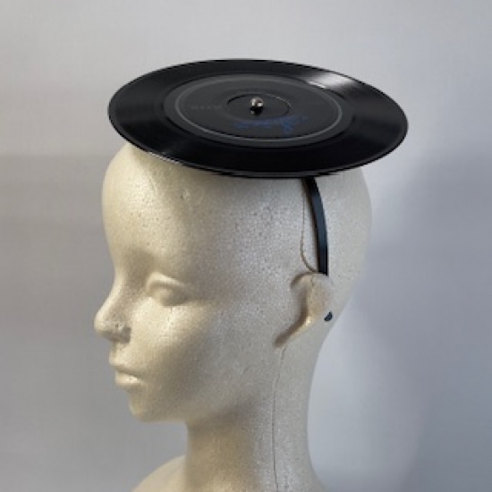 Freeサイズのカチューシャに7インチ178mm のEPレコードが乗ります♬