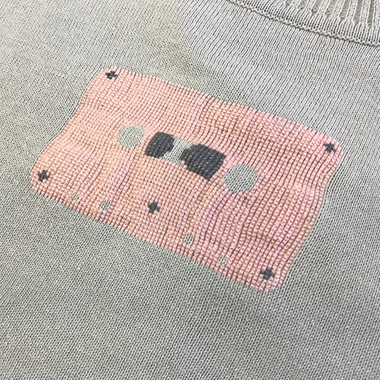 私自身もいまだ変わらぬカセットへの愛を気持ちにしようと、今回ニットにしてみたのです。