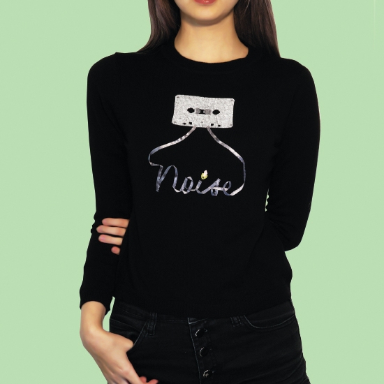 SINZのニットウェアのデザイン基本は「音ノリ」です。懐かしいカセットテープをモチーフにした春物ニットウェアです。
