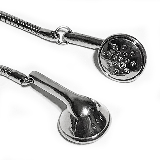 This is a necklace with earphone shaped pendants. It is made of snake chain so that you can wear the necklace as you like. No worry about metal allergy since It is made of stainless steel.