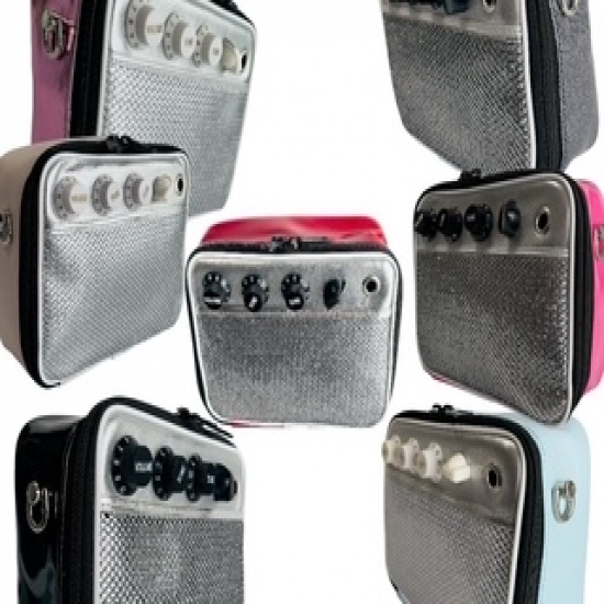 アンプシリーズはずっとウチしかやらない大好きなモチーフです。 その時代やニーズによって形や機能を色々試してみたくなり 最近はスマホとカードだけ入れば良いほど便利な時代になりました。 でも花粉症の人、マスクが離せない人、メークが気になる人など人それぞれ+αが有ったりするのでスマホケースよりは大きく可愛いアンプを作りました。私は金属ファスナーが好きだけど最近ネイルに凝ってる人が多く プラスチックの方が優しいと思いコイルファスナーにしました。バッグの開け方も全面が前に開き蛇腹がマチとつながって開く方式なのでモノが落ちません。