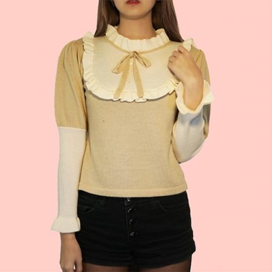 "Juliet" is one from popular SINZ' knitwear series "Trompe-l'œil". Designed with frills and a ribbons.