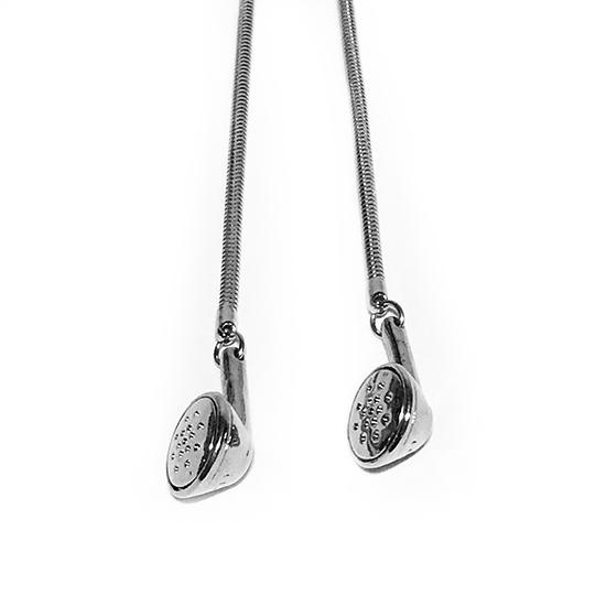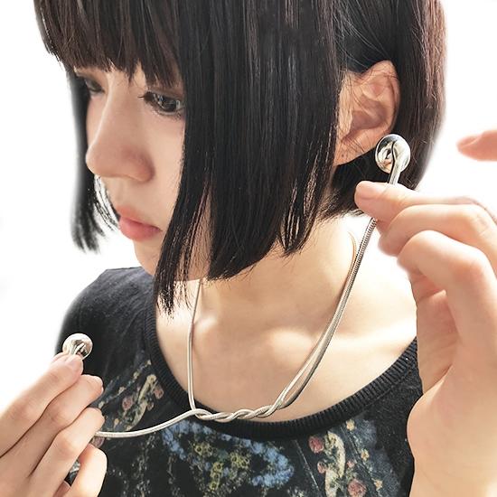 リアルなイヤフォンの形をしたアクセサリートップ部分がシブ可愛いラリエットタイプのネックレスです。