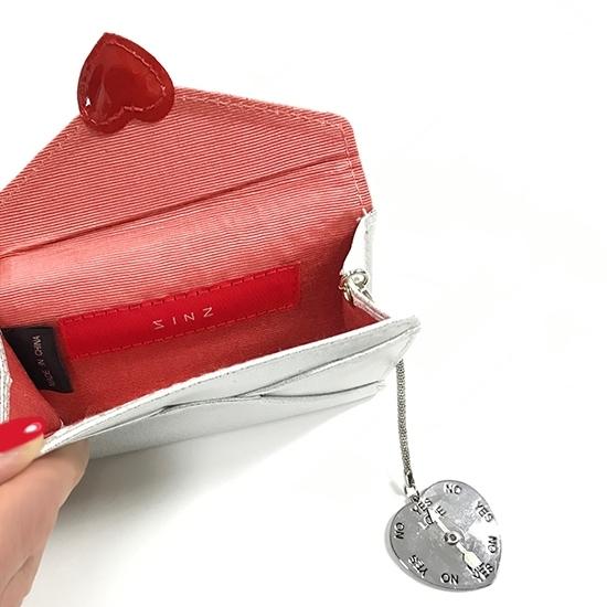 Our designer Inagaki’s masterpiece, love letter shaped card holder. It is attached with a heart-clock shaped charm. It is shipped as it is wrapped in a black velvet bag.