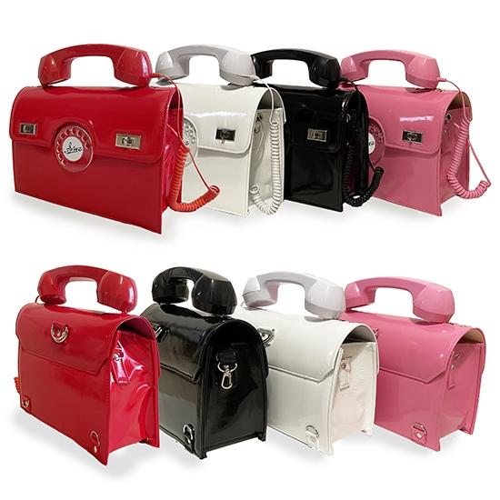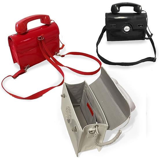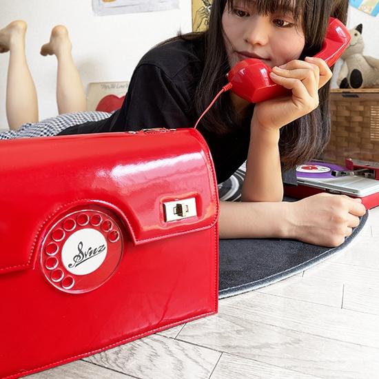 電話の受話器ほど握り心地の良いバッグのハンドルに適しているモノはないと思った事が有ります。それから昭和な電話器をリサイクル屋さんやメーカーNTTなどあちこち探し回りましたがあの日本中に何千万台も有った電話器は数年の間にほとんどが処分され見つかりませんでした。でもどうしても電話バッグを作りたくて探し回ったらなんと!エレベーターが止まった時など緊急時に備えて作ってるメーカー発見!こんな面白すぎるバッグなんて何処でも誰でも持ちたいと思わないけど長年細々と創ってきました。でもこの頃握り心地と面白さだけじゃない実際に使えるようにならないかとアンテナを張ってたら出てきました♬ バッグにスマホを仕込んでから受話器をバッグ本体から外して音楽を聴いたり電話ができます♪ そして何よりも受話器で話している姿が絵になる昭和のお姐さん仕様に開発できました♡ 電話バッグの進化は続くのでした!