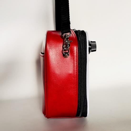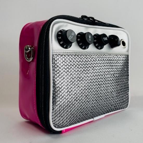 アンプシリーズはずっとウチしかやらない大好きなモチーフです。 その時代やニーズによって形や機能を色々試してみたくなり 最近はスマホとカードだけ入れば良いほど便利な時代になりました。 でも花粉症の人、マスクが離せない人、メークが気になる人など人それぞれ+αが有ったりするのでスマホケースよりは大きく可愛いアンプを作りました。私は金属ファスナーが好きだけど最近ネイルに凝ってる人が多く プラスチックの方が優しいと思いコイルファスナーにしました。バッグの開け方も全面が前に開き蛇腹がマチとつながって開く方式なのでモノが落ちません。